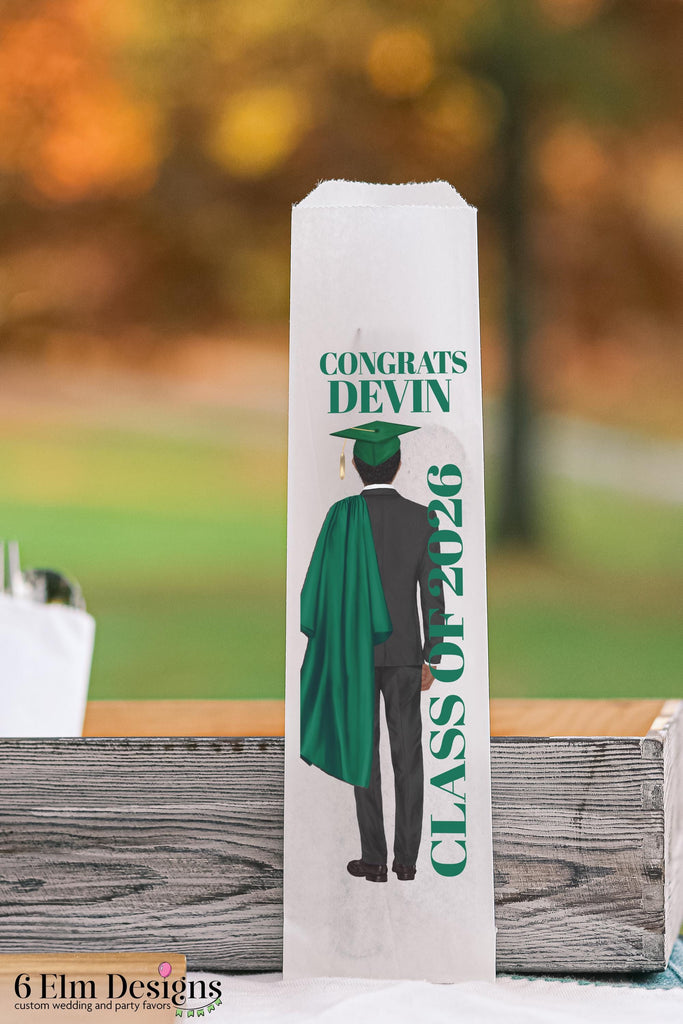Celebrate the Class of 2026 in style with our high-quality, custom graduation silverware bags. Expertly crafted to enhance your graduation party decor, these bags make a beautiful addition to any graduation meal. The unique rustic silverware design adds a touch of charm to your party landscape, elevating the class of 2026 table decor.