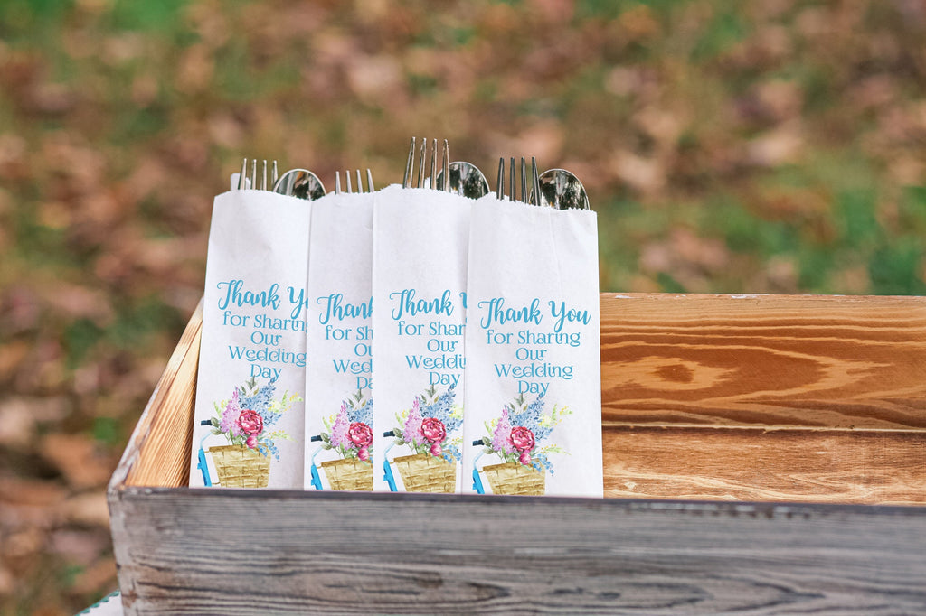 What a great way to thank your guests for coming to your special day. These silverware bags would look perfect across each guests place setting, it's a great way to welcome them.