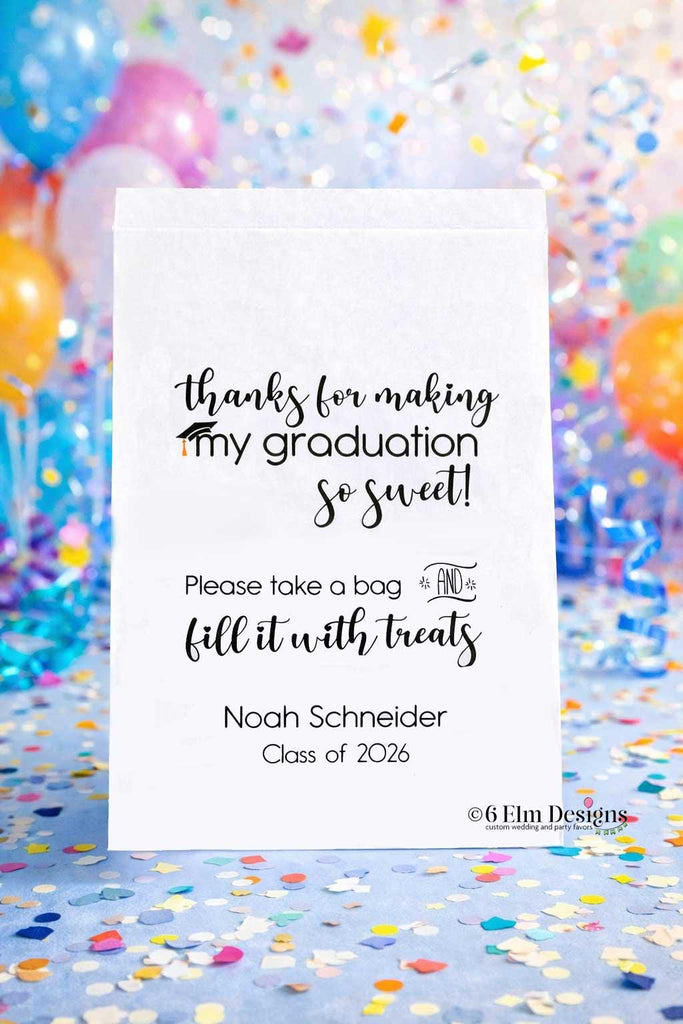 Whether you’re hosting a small family gathering or a full-scale grad party, these personalized bags help you thank your guests in style.
