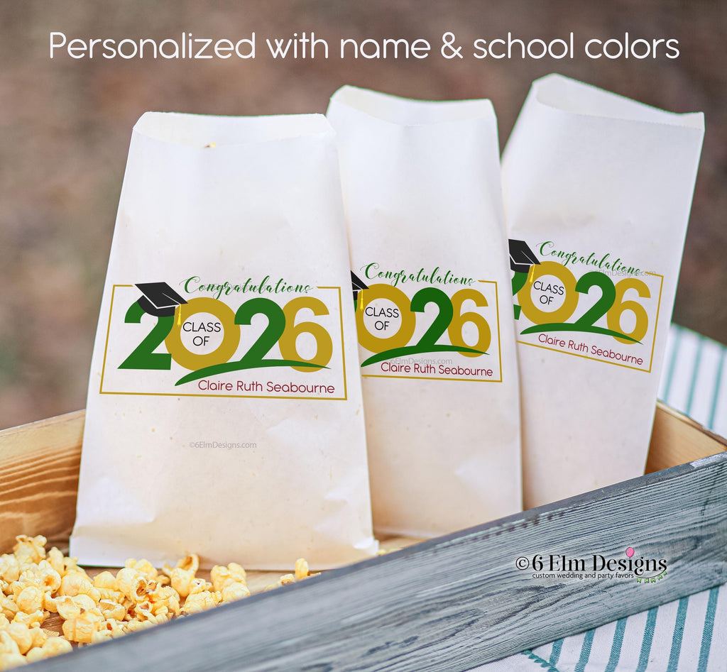 Favor bags and perfect for any graduation party! These adorable Graduation Day Class of 2025 bags will be the finishing touch on your graduation party! Customize colors to match the theme of your graduation party or to reflect the unique personality of your graduate, making these bags a cherished keepsake of this important life event. For a high-school or college graduation, these favor bags are sure to be a hit amongst guests and the graduate alike!